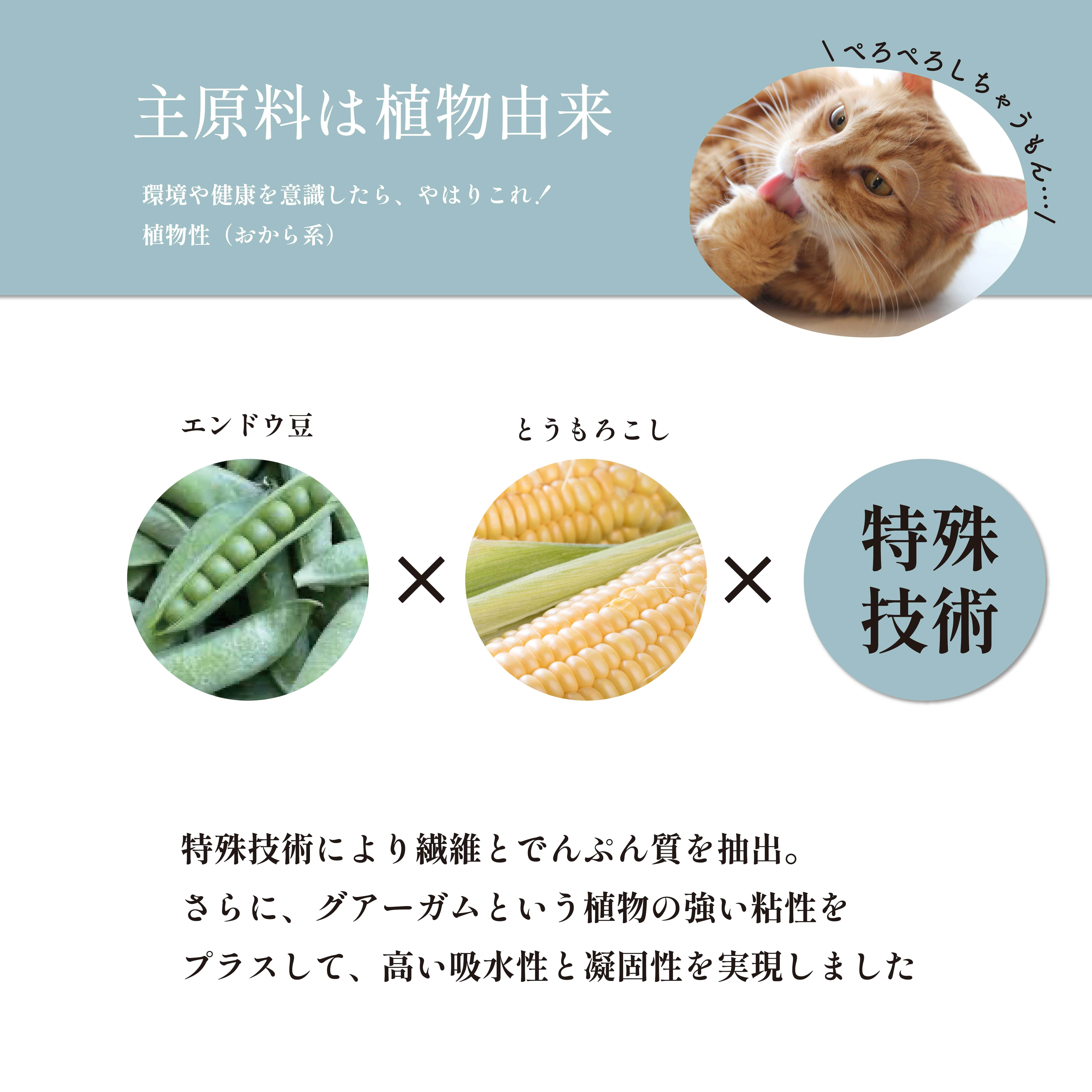 アレルギーに配慮し、ストレスフリーな猫砂。