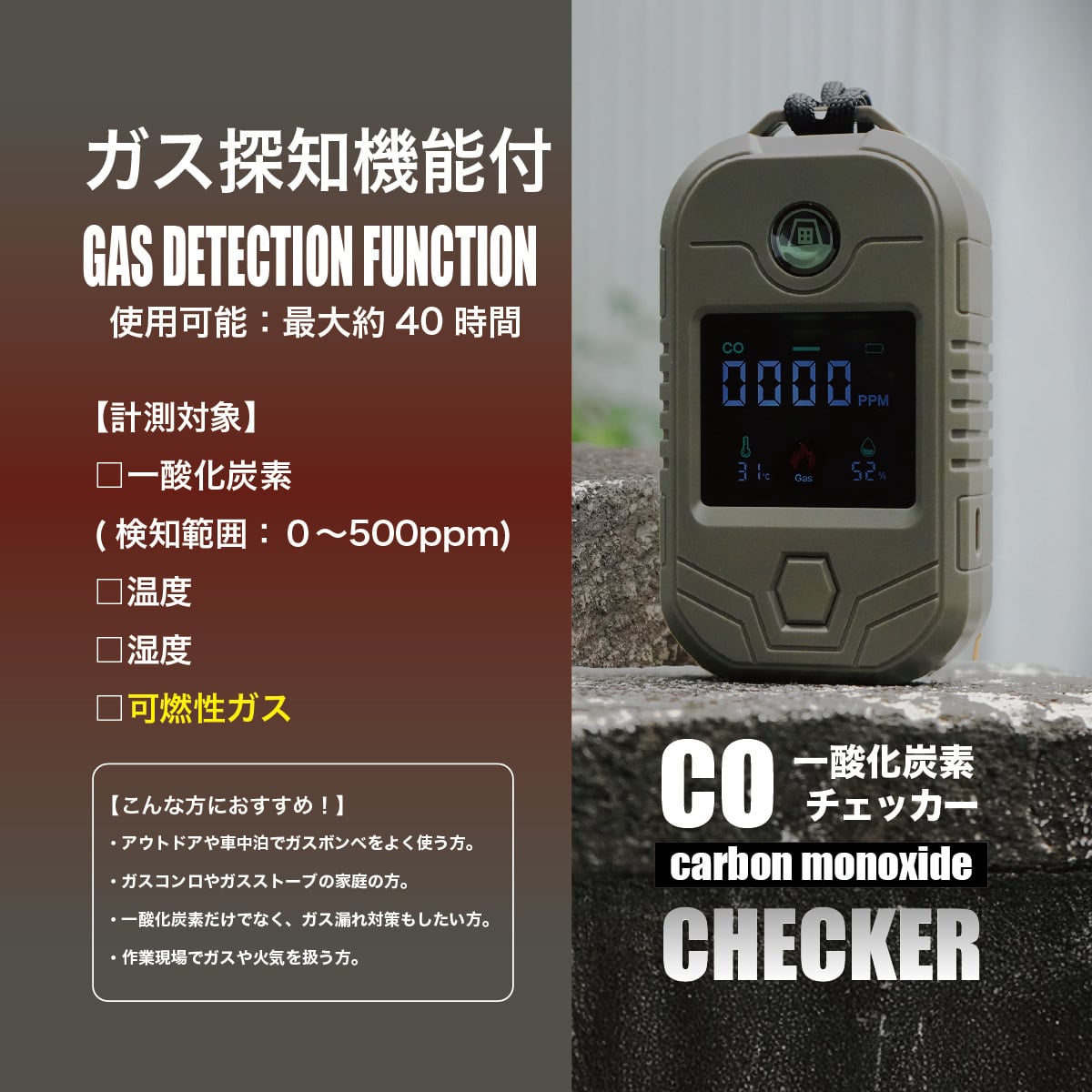 新モデル!多機能一酸化炭素チェッカー【SRV-G ガス検知付モデル】CO検知器 多機能 ガス検知 温度湿度測定 大音量アラーム ライト付き SOS機能 車中泊 キャンプ 防災