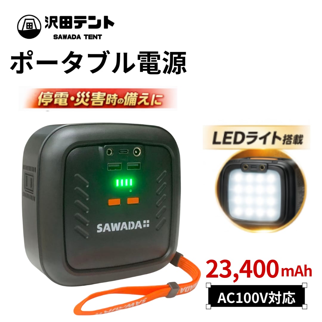 SAWADAコンパクト モバイル バッテリー LEDライト付き(ブラック)AC電圧 100V